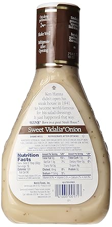 Ken's sweet vidalia onion dressing nutrition facts. Dietary Fiber 0g Total Sugars 10g. Low in carbs Carbohydrates Below is the full nutritional label. Walden Farms Jersey Sweet Onion Dressing Calorie Free Carb Free Fat Free Sugar Free.
